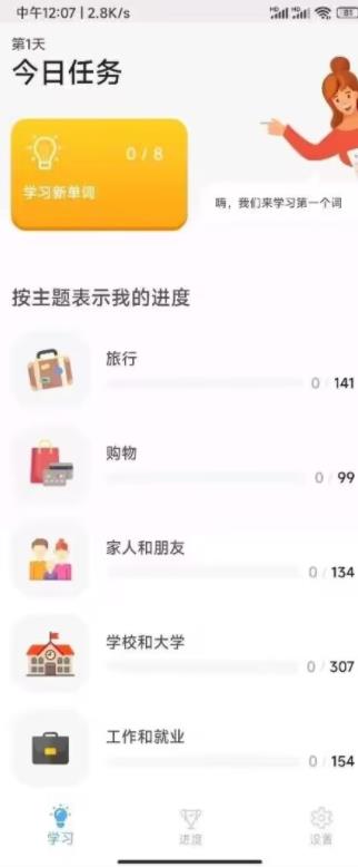 1、各类词汇被划分成多个不同主题,使用者可自由选择,开启学习之旅。