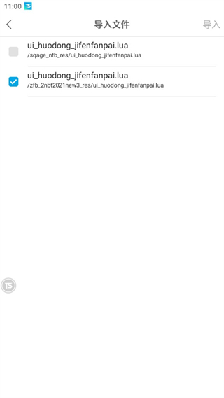 2、在扫描结果中,勾选需要导入的脚本文件,点击右上角的「导入」按钮。