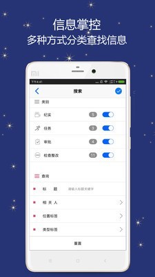 2、分类管理:项目纪实、任务跟踪、审批渠道、会议落实;