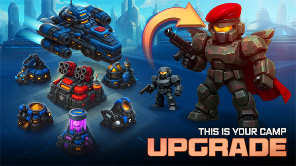 在战斗间隙收集零件、能量核心与稀有模块,合理利用资源升级机器人,解锁更强战力与全新技能。