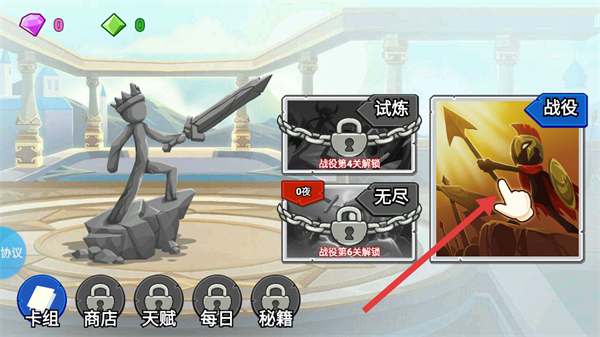 1、在主界面点击战役选项,进入对应的游戏关卡,开启游戏的战役模式挑战。