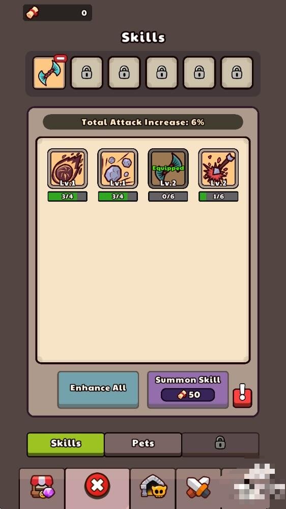 5、消耗技能卷可以抽取各种技能,并自己搭配。