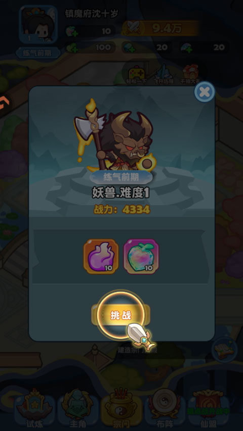 4、进入正式游戏后,你需要驱逐入侵的妖兽,直接点击挑战按钮即可;