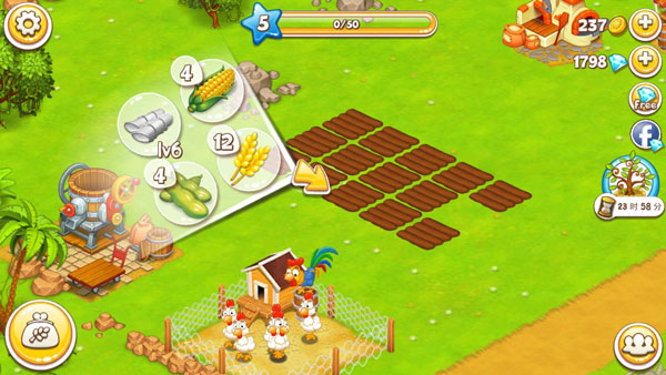 3、和朋友们一起协同发展各自的农庄,携手建造出数百种社区建筑、房屋、生产设施、农场设施以及各式精美的装饰物。