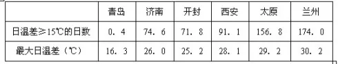 下表是我国北方几个城市气温日较差平均状况,读表回答1-3题。