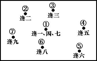 (2007年高考宁夏卷文综)20世纪60年代,我国西部某平原地区在各集镇形成周期性集市。农历每月内,集市逢一、四、期在①地,其余各天分别在周围六个集镇,如下图所示(初一、十一、廿一为逢一,其余类推)。回答3~4题。