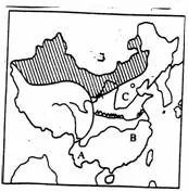 (3)当A地开始出现西南季风时,B地多出现 天气,C地农业生产常面临 的威胁。