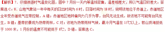 下图为北半球三个地区植被在垂直方向上的分布示意图。读图完成7~8题。