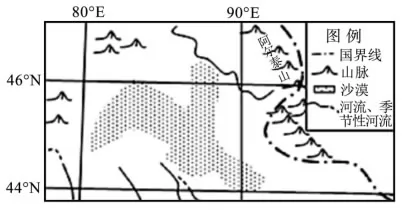 【解析】(1)降水特征要从年降水量大小、降水的季节分配进行描述分析。该地区地处内陆,远离海洋, 年降水量约 300 毫米,年降水量小;冬春季季节由于气压带风带南移,该地受西风影响,从海洋带来一定的水汽,降水略多;夏秋季(7—9 月)降水少。