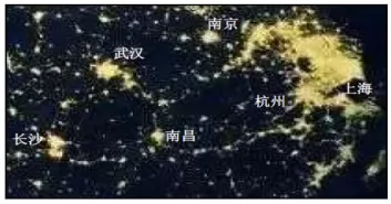 航拍夜景图的亮度一般来说反映了地区的发达和人口稠密程度。读近日我国局部地区夜景图,完成3—4题。