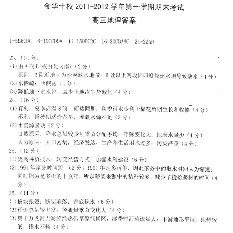 本文标题:浙江省金华十校2012届高三上学期期末考试地理试题