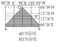 (3)此时地球上新的一天和旧的一天的分界线是国际日期变更线和和0点经线;此时昏线与赤道的交点位于90°W,可知90°W地方时为18点,0点经线就是0°经线;此时新一天的范围是从0°经线向东到180°经线,占1/2。