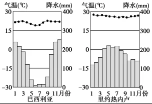 (2)比较分析里约热内卢与巴西利亚气候特征的不同成因。