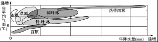 下图为六种主要植被类型的气候要素分布范围图。读图,回答1~2题。