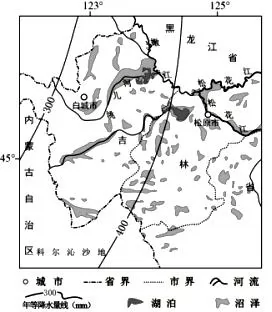 (3)从水资源方面说明吉林西部地区发展种植业的不利条件。