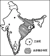 下图为印度示意图,读图根据所学知识,回答下面小题。