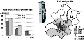 2016 年初开始,北京的电动汽车车主就在抱怨,充电难的问题来自于充电桩的数量和公共充电网点太少。为解决公用充电桩的合理布局问题,相关部门进行了抽样调查,发现部分区县的住宅地和工作地人数分布比例差异明显。读下图完成17、18题。(河北省衡水中学2017届高三下学期七调文科综合)