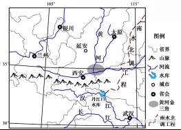26.“黄河金三角”处于山西、陕西、河南三省交界处,是我国重要的承接产业转移示范区。读我国某区域图,完成下列问题。(10分)(原创)