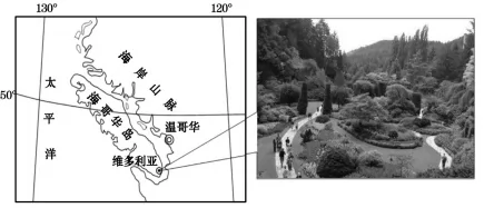 (1)简析温哥华岛发展花卉展示园有利的气候条件。(3分)