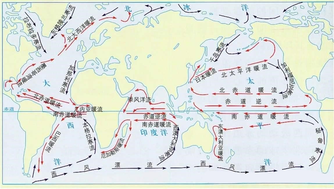 ⑥洋流:暖流使得沿岸气候增温增湿,寒流则会降温减湿。