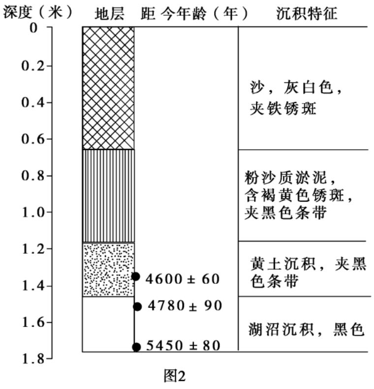 (2)图2所示地层,埋藏越深,距今年代越_____。深度1.6米处为湖沼沉积,由此可推断该地当时的气候较为_____(湿润/干燥)。