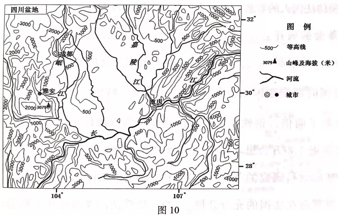 茶树生长所需条件是:气温在109C~35C时能正常生长,在10℃~35℃时生长最快:有充足的光照,但不能太强;年雨量在1500mm左右,且各月月均匀;土层深厚、排水良好等。茶马古道、川藏门户上的雅安市是世界上最早人工栽植茶叶的地方。该市的“蒙顶山茶”是唐代进贡最多的茶种,白居易曾赞曰“扬子江中水,蒙山顶上茶”。2011年中国唯一的茶叶专业交易所一一蒙顶山茶叶交易所成立,该交易所采用“互联网+茶产业+金融+现代物流”模式运行。近年来,雅安市推行供销合作社托管茶园的项目,对茶叶的生产和销售全环节进行精细化管理。2017年雅安市的茶园面积超过100万亩,产量超过8.6万吨,“蒙顶山茶”位列中国十大茶叶品牌。图10为雅安位置示意图。