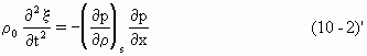 式(10-3)为有限振幅声波的波动方程,它是一个非线性方程,下标S表示声波传播时介质状态的变化是绝热过程,因为声振动的频率与介质的状态变化相比是很迅速的,在一个周期的声波变化过程中,介质来不及与周围产生热
