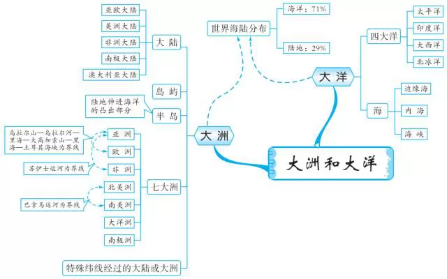 > 初中地理思维导图-陆地和海洋