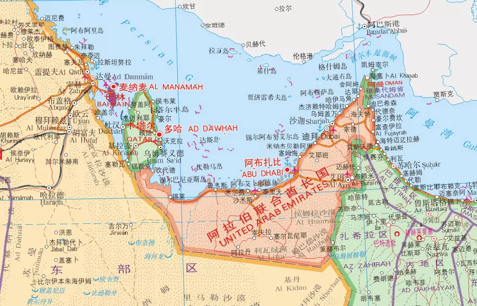 > 卡塔尔,巴林,阿联酋地图中文版全图