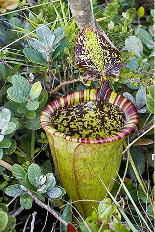 巨型猪笼草的直径达到30厘米,足以捕获倒霉的啮齿类动物,但通常情况下,它们还是主要以昆虫为食。全世界共有大约600种不同类型的猪笼草,通常生活在氮缺乏的环境,为此,它们需要从腐烂的猎物尸体中获取营养物质。