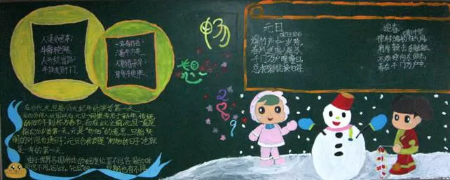这一次比以前有较大的进步,主题明确,色彩搭配和谐,“新春吉祥”四个字写得很有味道,插图也比较精致,整体效果好,是一期优秀的黑板报。