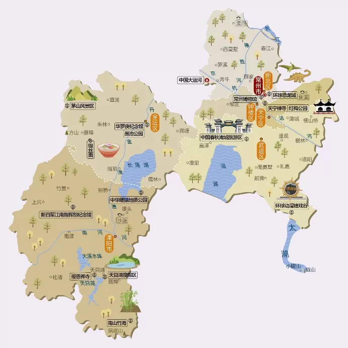 常州,别称“龙城”,长江文明和吴文化的发源地之一,也是南朝齐梁故里,被称为“中吴要辅”。常州是近代中国民族工商业的发祥地之一。境内风景名胜、历史古迹较多,有天目湖、南山竹海、天宁禅寺等景点。