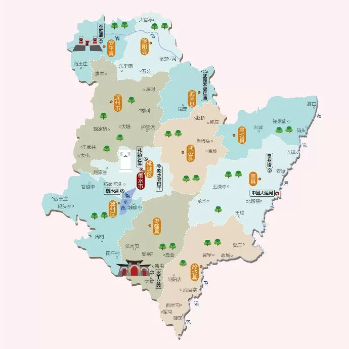 大禹治水划天下为九州,现衡水所辖冀州为九州之首。河北省称冀,也缘于此。衡水涌现出了董仲舒、孔颖达、高适、孙犁等知名人物。境内有衡水湖、武强年画博物馆等旅游景点。
