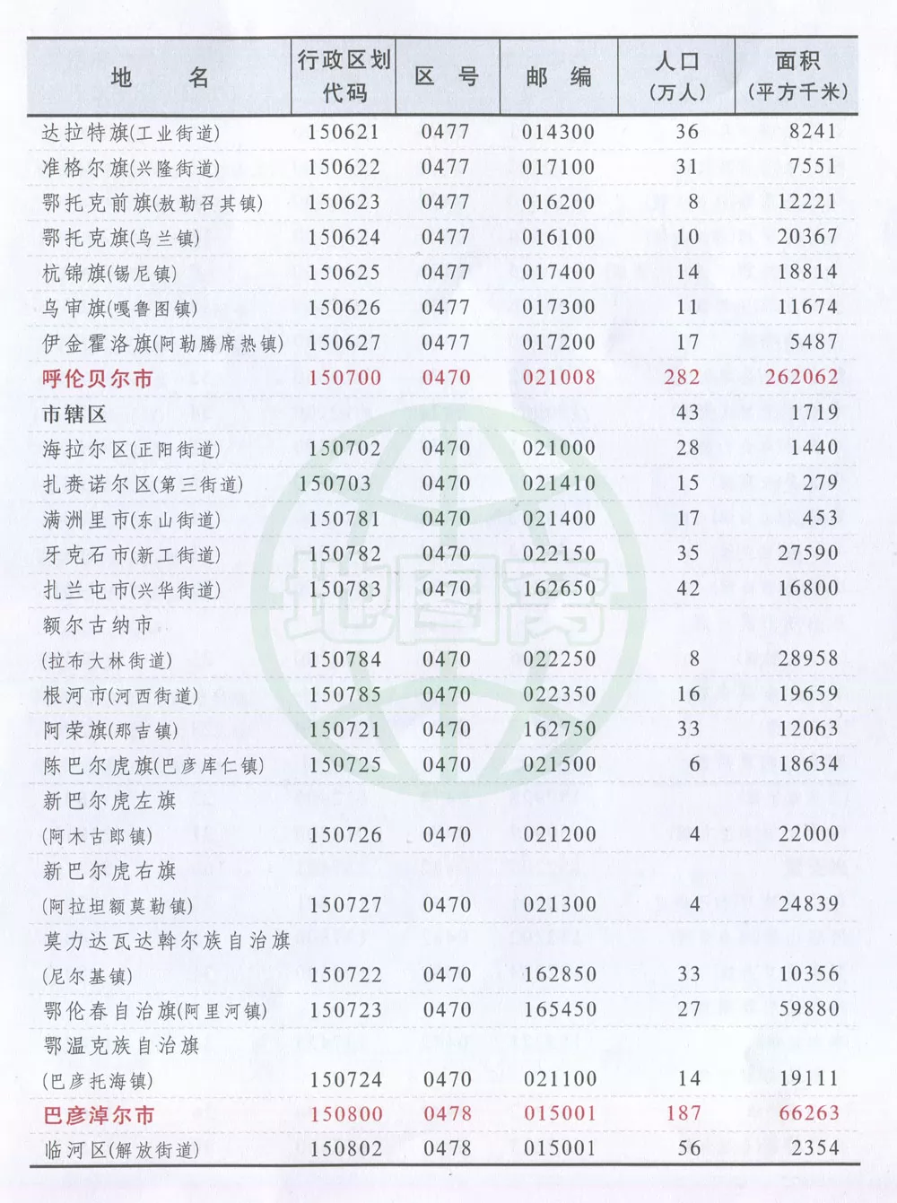 > 内蒙古行政区划图+行政统计表