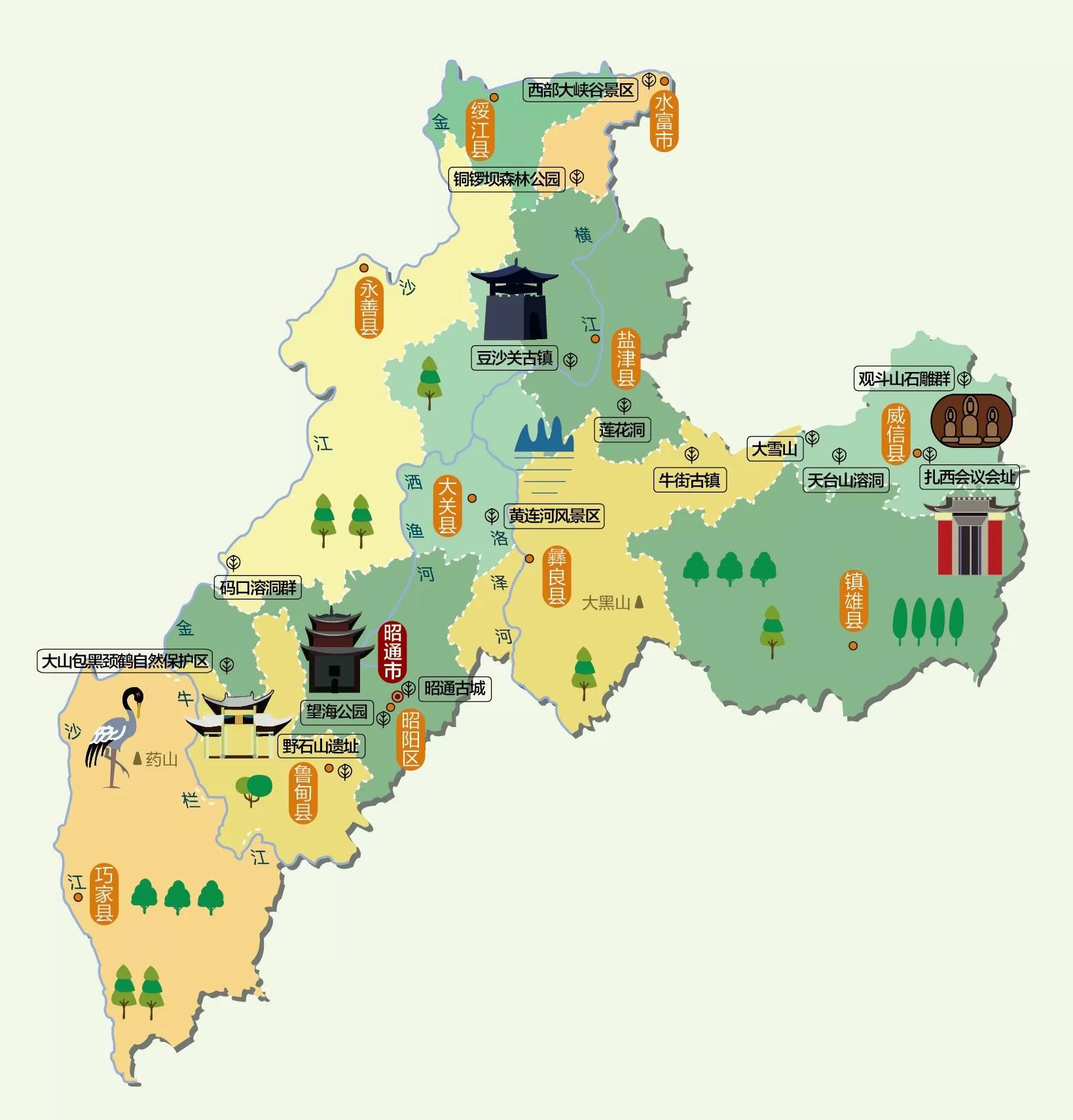 昭通是“南方丝绸之路”的要冲,享有“锁钥南滇,咽喉西蜀”之誉。昭通孕育了罗炳辉、李国柱、龙云、卢汉等杰出人物,文艺创作人才辈出,形成了备受关注的“昭通作家群”和“昭通文学现象”。境内有望海公园、豆沙关古镇、昭通古城、黄连河风景区、西部大峡谷等景区。